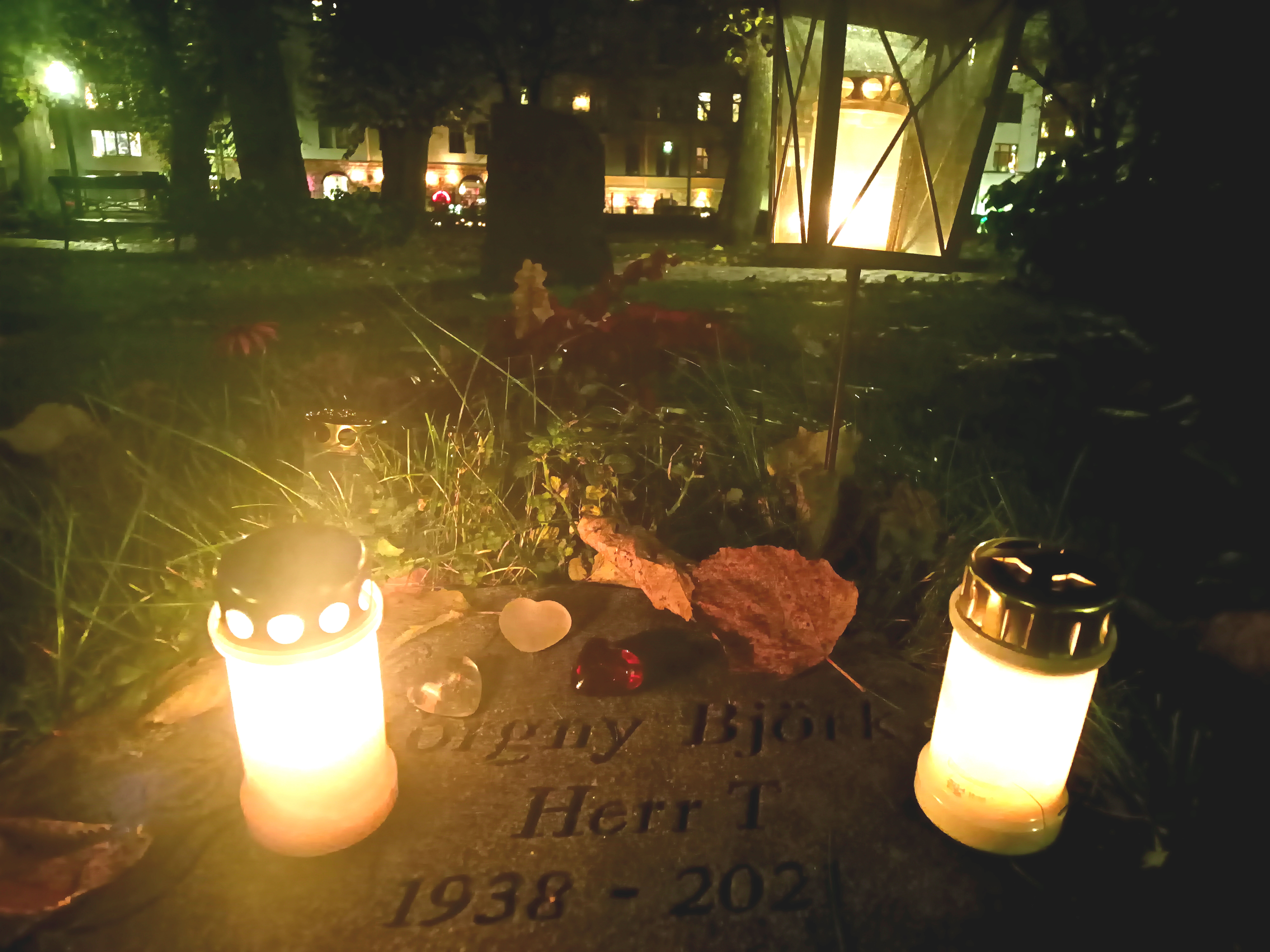 Graven får nya blommor regelbundet och är en plats där anhöriga och andra kan minnas Torgny Björk och hans gärning. Nedan, allhelgona 2025.